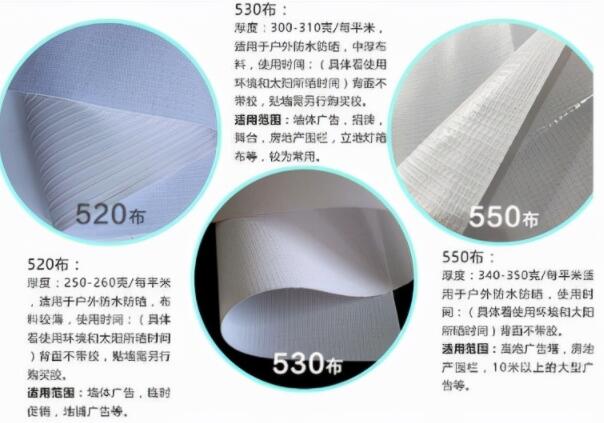 如果你接觸過3種噴繪布就知道,無論是密度還是厚度,550噴繪布都要>530噴繪布>520噴繪布。