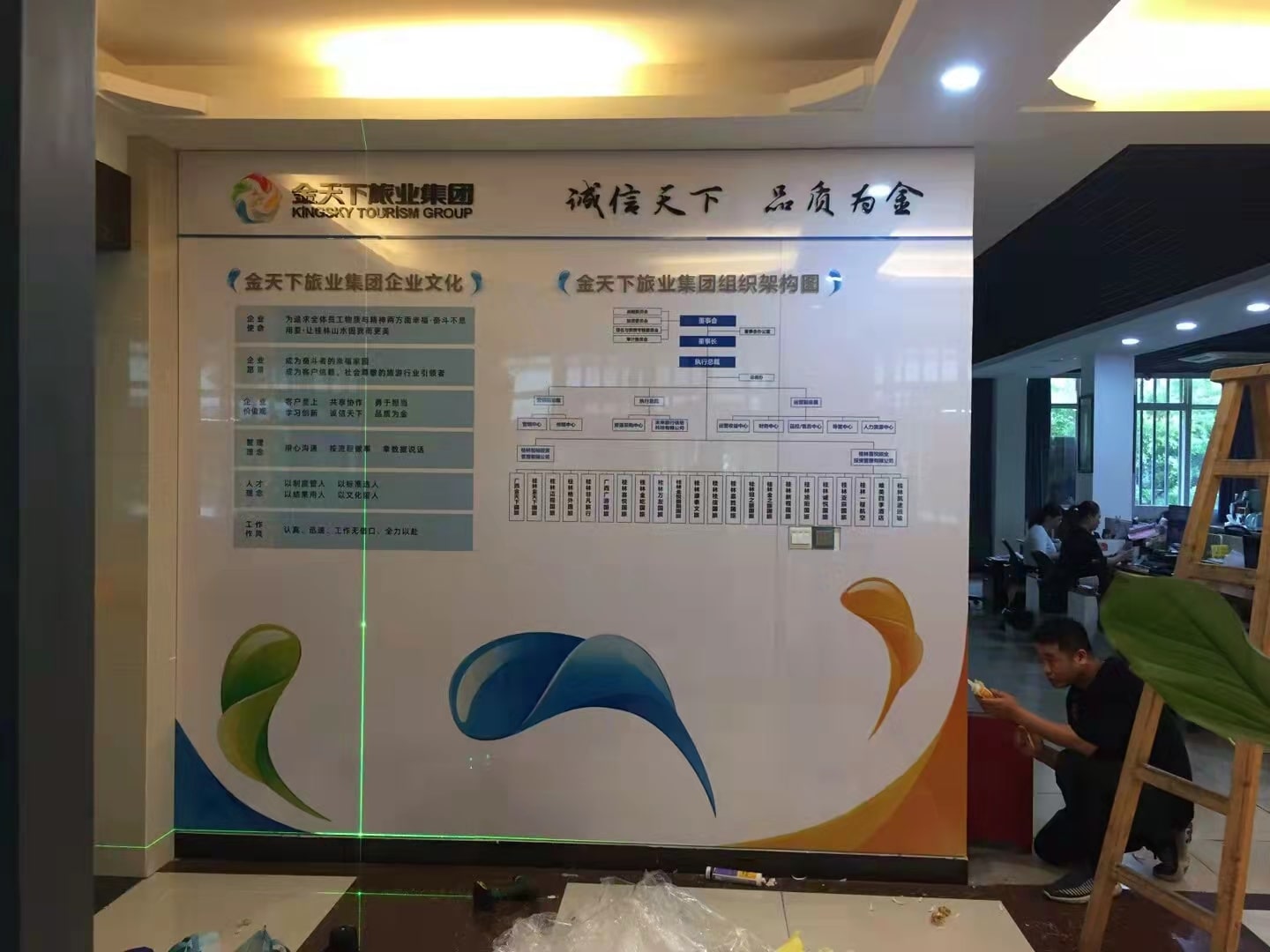 3)目前,盛和塾桂林分塾,已有幾個塾生企業(yè)長期和聚風廣告工廠合作,比如金天下旅游集團,可以看看我們幫他們做的企業(yè)文化墻(如下圖):